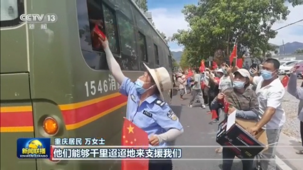 重庆居民 万女士:他们能够千里迢迢地来支援我们,他们也是人家的孩子,我们真的都很心疼他们,确确实实太感谢他们了。